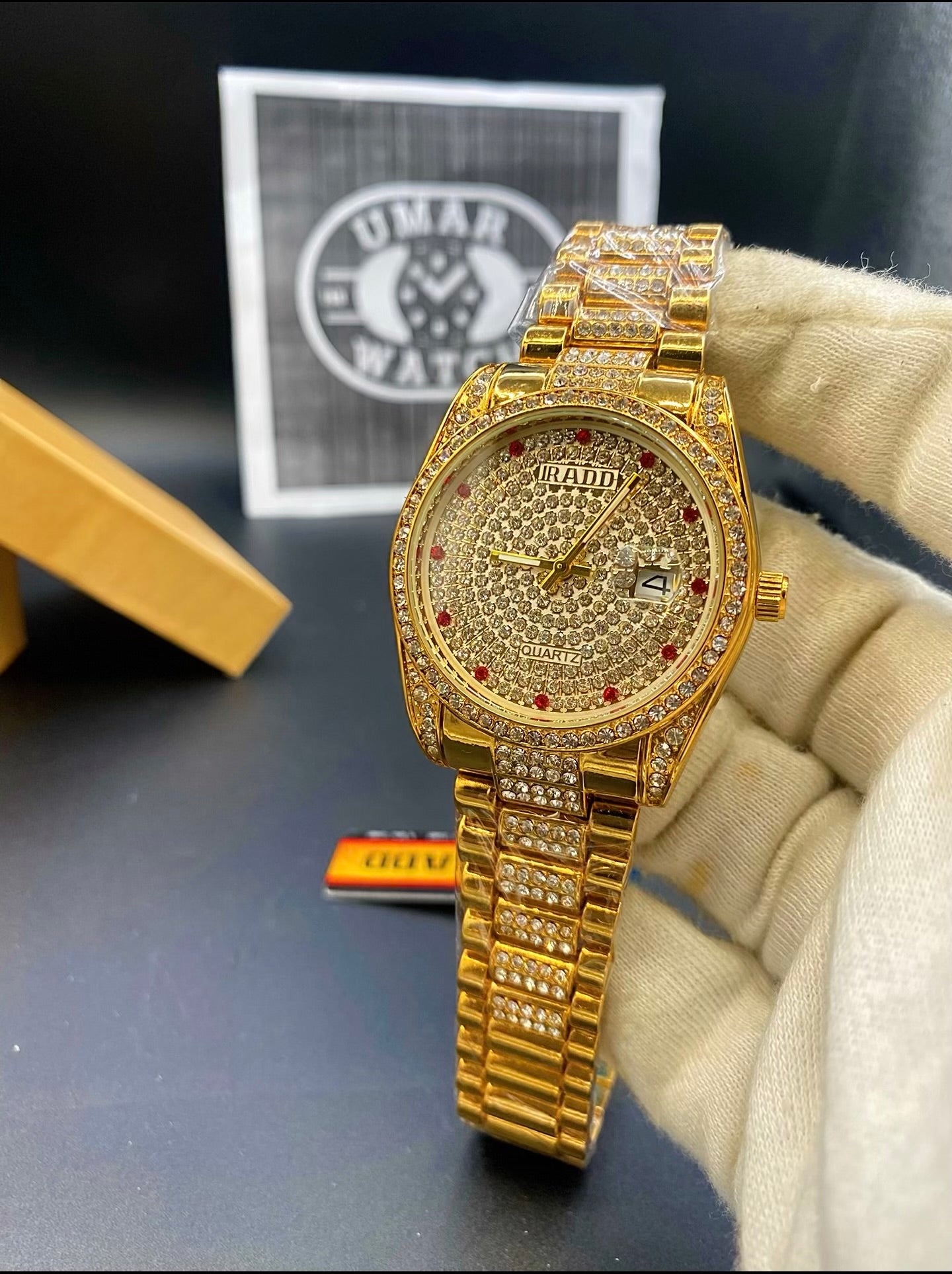 Luxury Quartz Watch with Full Crystal Detailing and Date Function Master lock